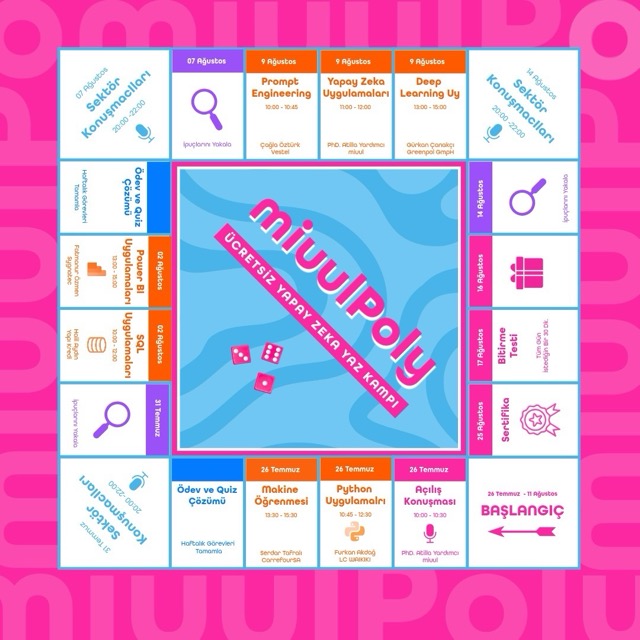 Miuul Yapay Zeka Yaz Kampı; öğrencilere, sektör profesyonellerine, startup ekiplerine ve kariyerinde yön değiştirmek isteyen herkese hitap ediyor. Hem Yapay Zeka çağına sıfırdan başlayarak hazır olmak isteyen kişilere hitap eden hem de ekiplerinin çağa ayak uydurmasına olanak tanımak isteyen sektör profesyonellerine hitap eden kamp; Veri Bilimi için Python Programlama, Makine Öğrenmesi, SQL ve PowerBI Uygulamaları, Prompt Mühendisliği, Yapay Zeka Trendleri ve Derin Öğrenme gibi başlıkları kapsayan zengin bir müfredatla katılımcıları bekliyor. Yapay Zeka trendlerini yakalamak isteyen ve Derin Öğrenme konuları ile uygulamalarla farkındalık edinmek isteyen herkes bu kampa davetlidir.